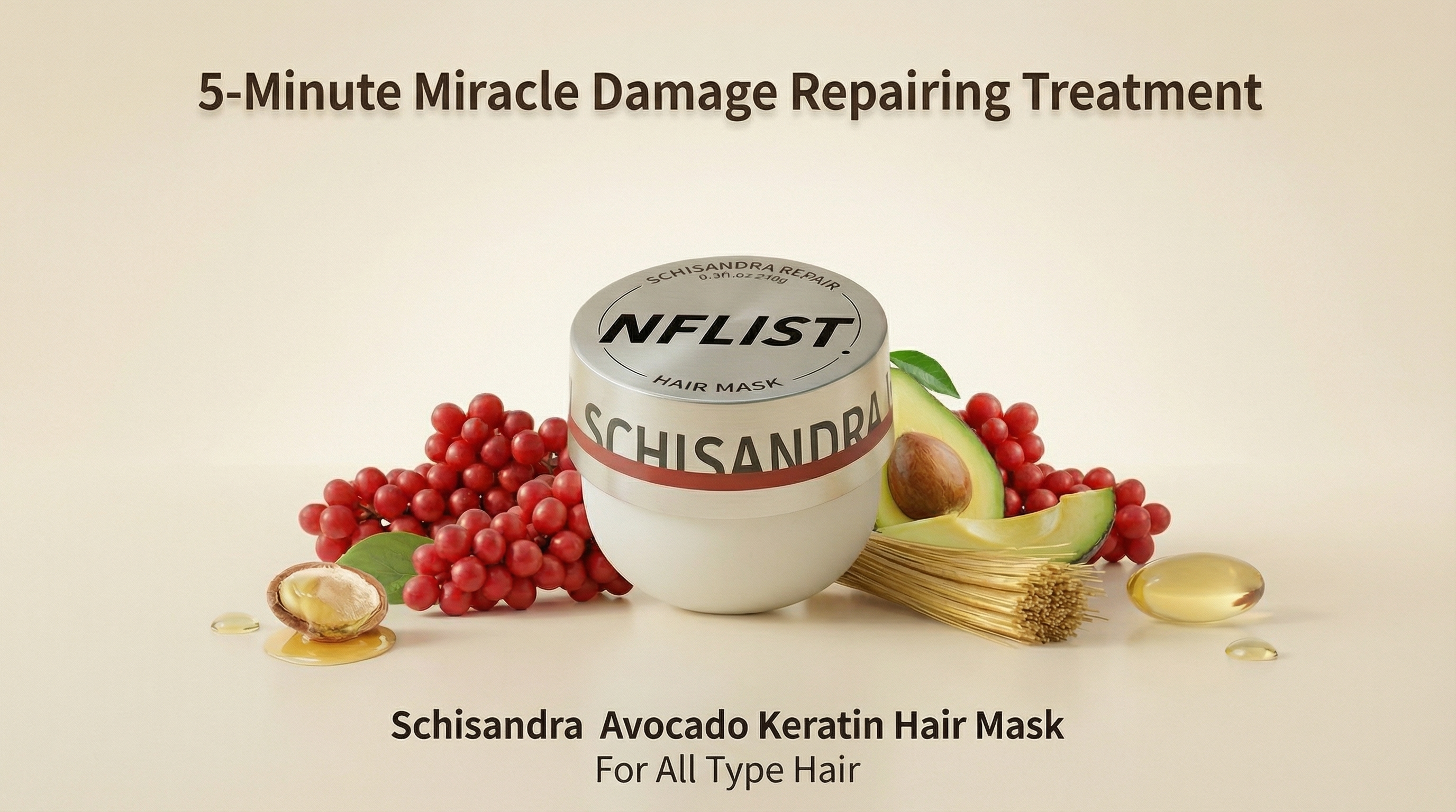 Schisandra Chinensis Fruit Extract, Avocado Oil, Keratin, Argania Spinosa Kernel Oil, Panthenol, Glycerin, Maltitol, Triticum Vulgare (Wheat) Bran Extract and Collagen are all derived from natural plants.